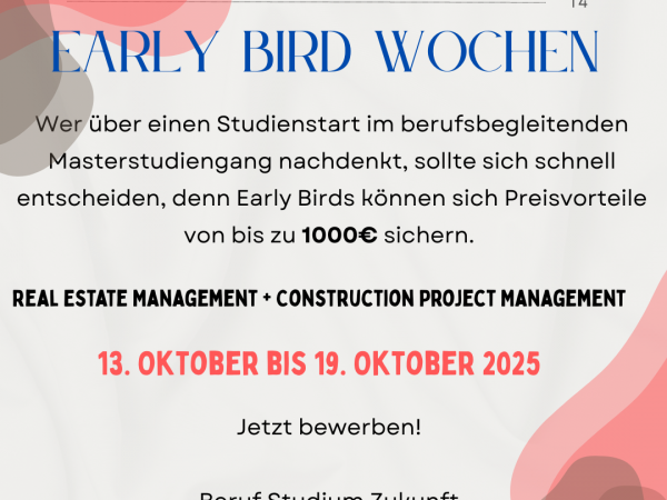 Immobilienmanagement und Unternehmensführung gehören ebenso zu den Inhalten, wie die Stärkung der Methoden- und Sozialkompetenz, um Mitarbeiter oder Teams besser führen zu können. Auch neue Methoden, wie Building Information Modeling (BIM) oder Ansätze zum nachhaltigen und energieeffizienten Bauen sind Bestandteile des Studiums. Alle Studierende erhalten ein Notebook und arbeiten mit modernen Methoden in kleinen Teams an ihren semesterbegleitenden Fallstudien, in denen sie reale Immobilienprojekte entwickeln. Mit zwei Auslandsmodulen sind die Absolventen auch international bestens gerüstet. Die Wege unserer Absolventen stehen dafür, dass der M.Sc. REM + CPM entscheidende Karrierevorteile verschafft.
